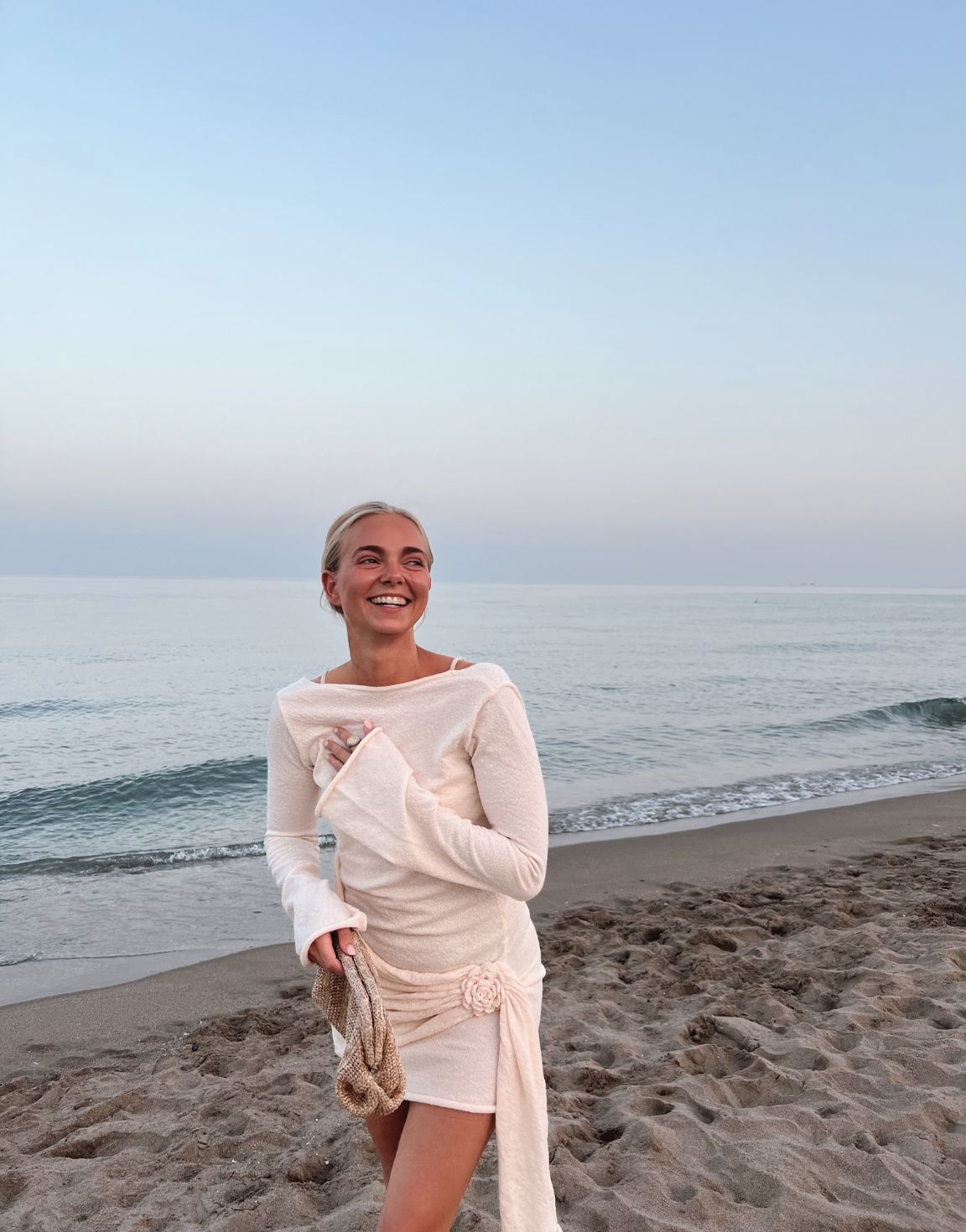 - Details: ribbed stretchy fabric / long sleeves / draped detail with rose