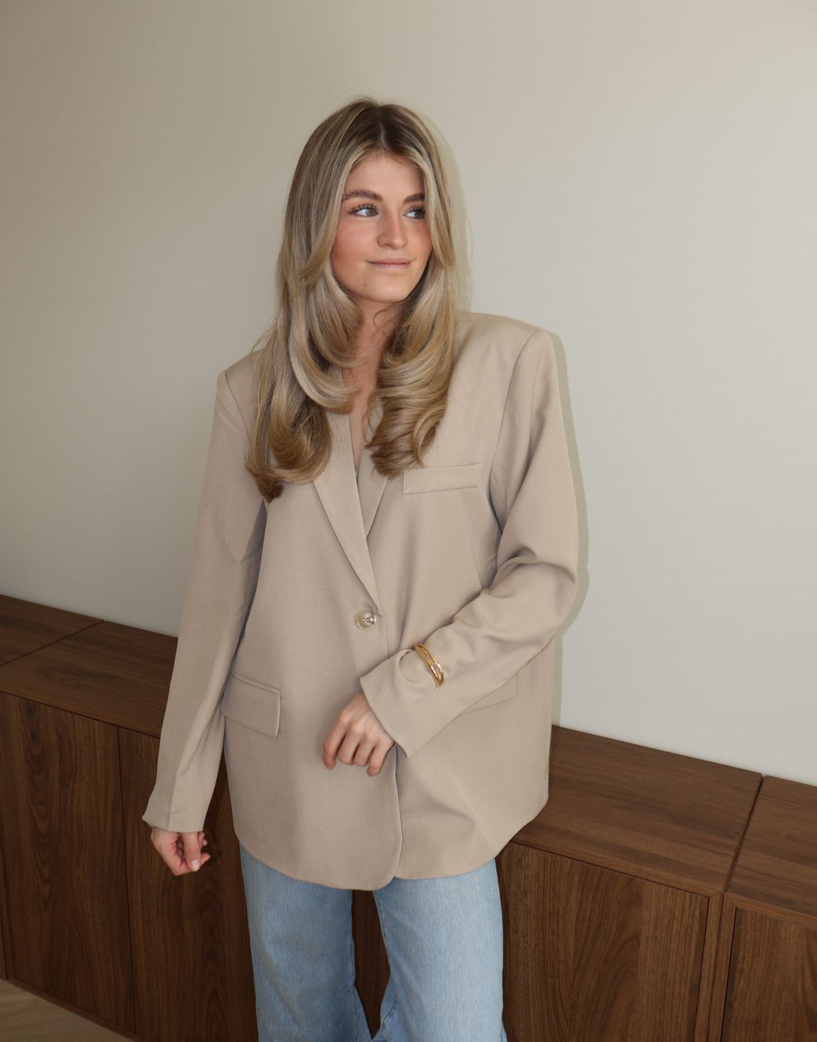 • Beige Open Rug Oversized - Blazer - Olivia & Kate