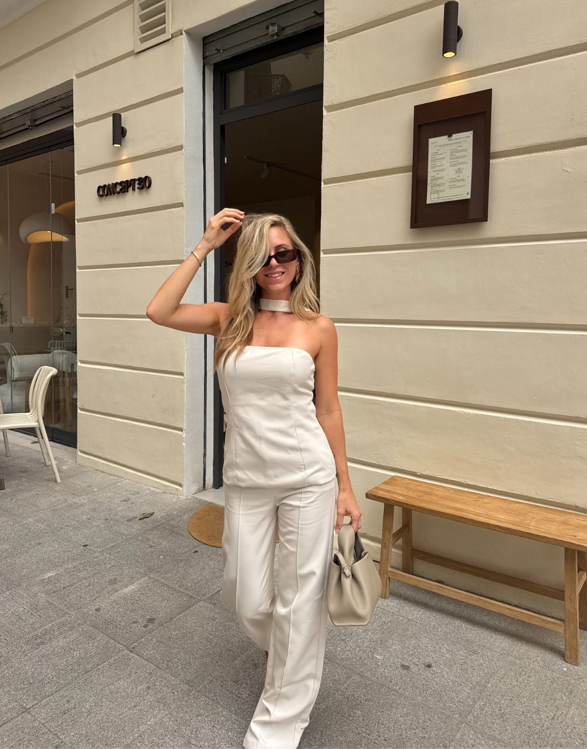 - Washing advice: hand wash only- Tumble dry: no- Details: strapless top / halter top / zipper at the back / slightly stretchy- Model length: 165 cm- Model is wearing: size S