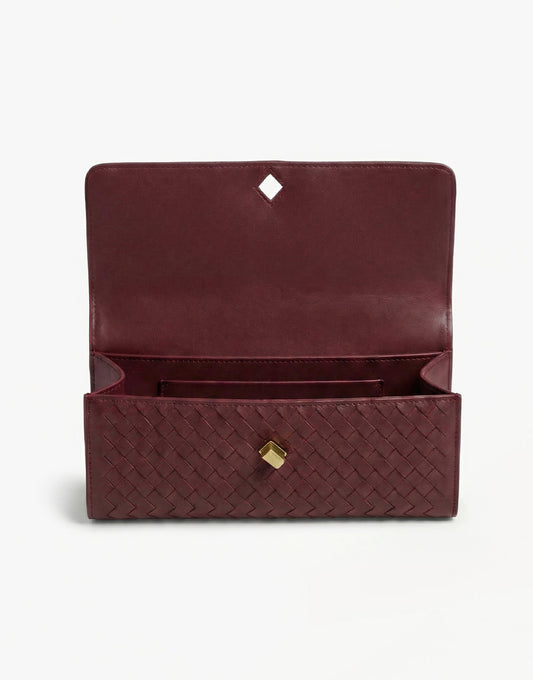 Art. Nr: 12967- Details: gewoven PU clutch / klein handvat bovenkant / gouden sluiting