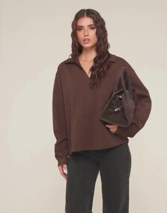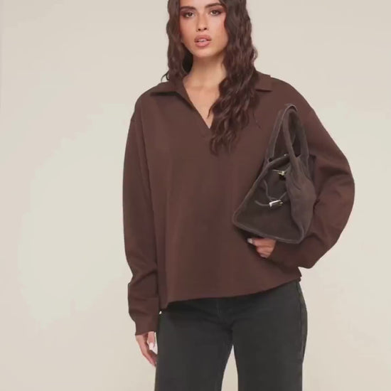 Art. No.: 12766- Washing advice: hand wash- Dryer: no- Details: V-neck / long sleeves / logo detail at the end of the sleeve / loose fit- Model height: 173 cm- Model wears: size S