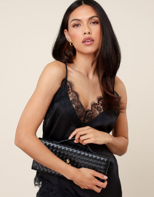 - Was advies: 30 graden- Droger: nee- Details: schuin lopend / kant aan boven en onderkant / spaghettibandjes / verstelbare bandjes / v-hals- Model lengte: 173 cm- Model draagt: maat S