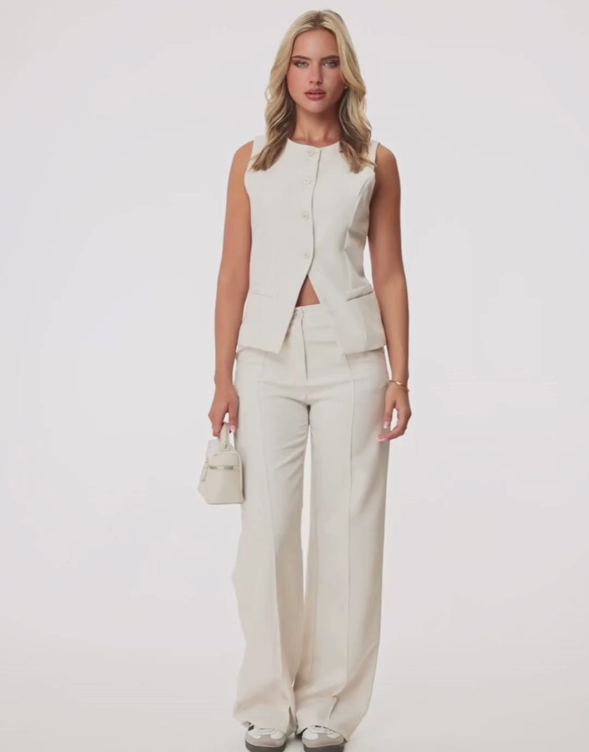 - Was advies: 30 graden- Droger: nee - Details: hoge knopen gilet / ronde hals / knoopsluitingen / twee nep zakken aan de voorkant- Model 1 lengte: 173 cm- Model 1 draagt: maat S