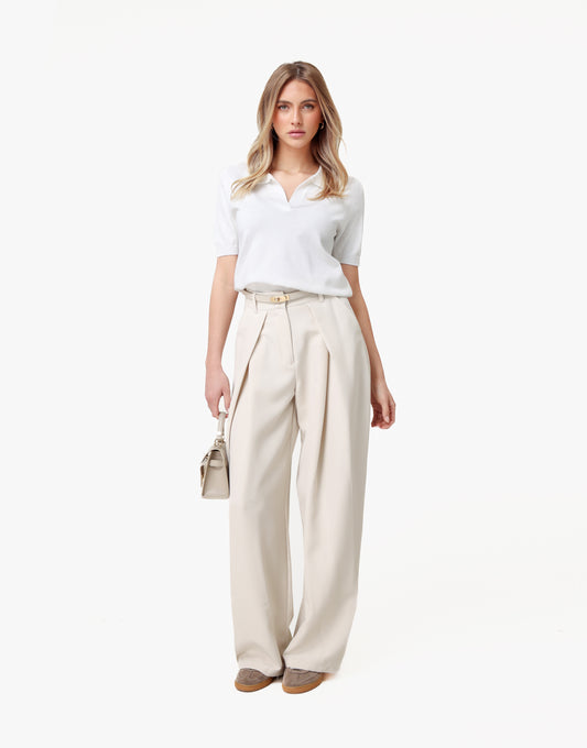 Art. Nr. : 12963- Was advies: handwas- Droger: nee- Details: recht model / plooien detail / echte zakken / knoop en rits sluiting - Model lengte: 175 cm- Model draagt: maat S
