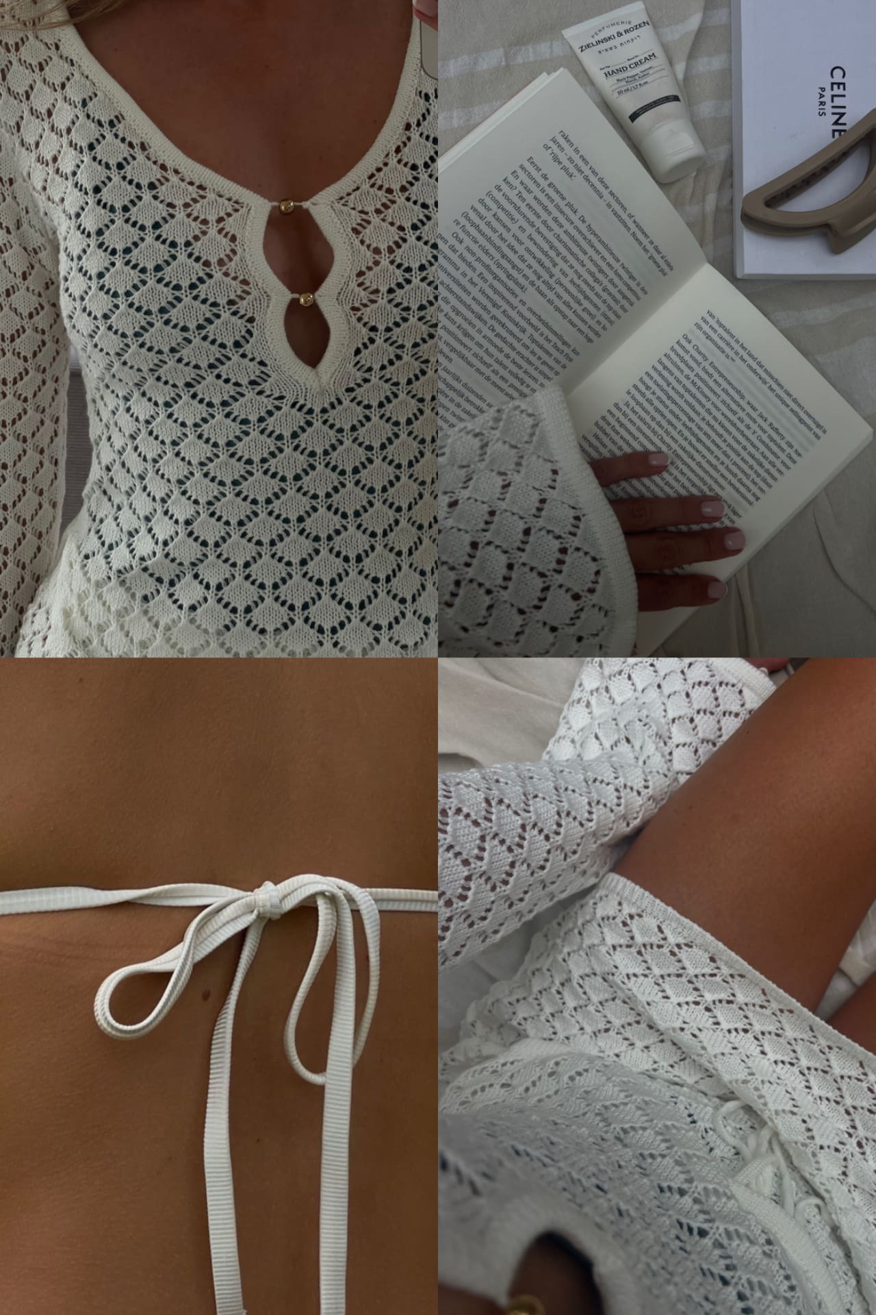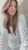 *DRAAG OVER BIKINI WANT SCHIJNT DOOR- Was advies: handwas- Droger: nee- Details: crochet stof / lange mouwen / schijnt door / uitlopende mouwen / knoop detail bij de borst - Model lengte: 173 cm- Model draagt: maat S