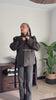 - Details: knoop sluiting / echte zakken / schouder detail / ceintuur / gevoerd / knopen detail / hoge brede kraag