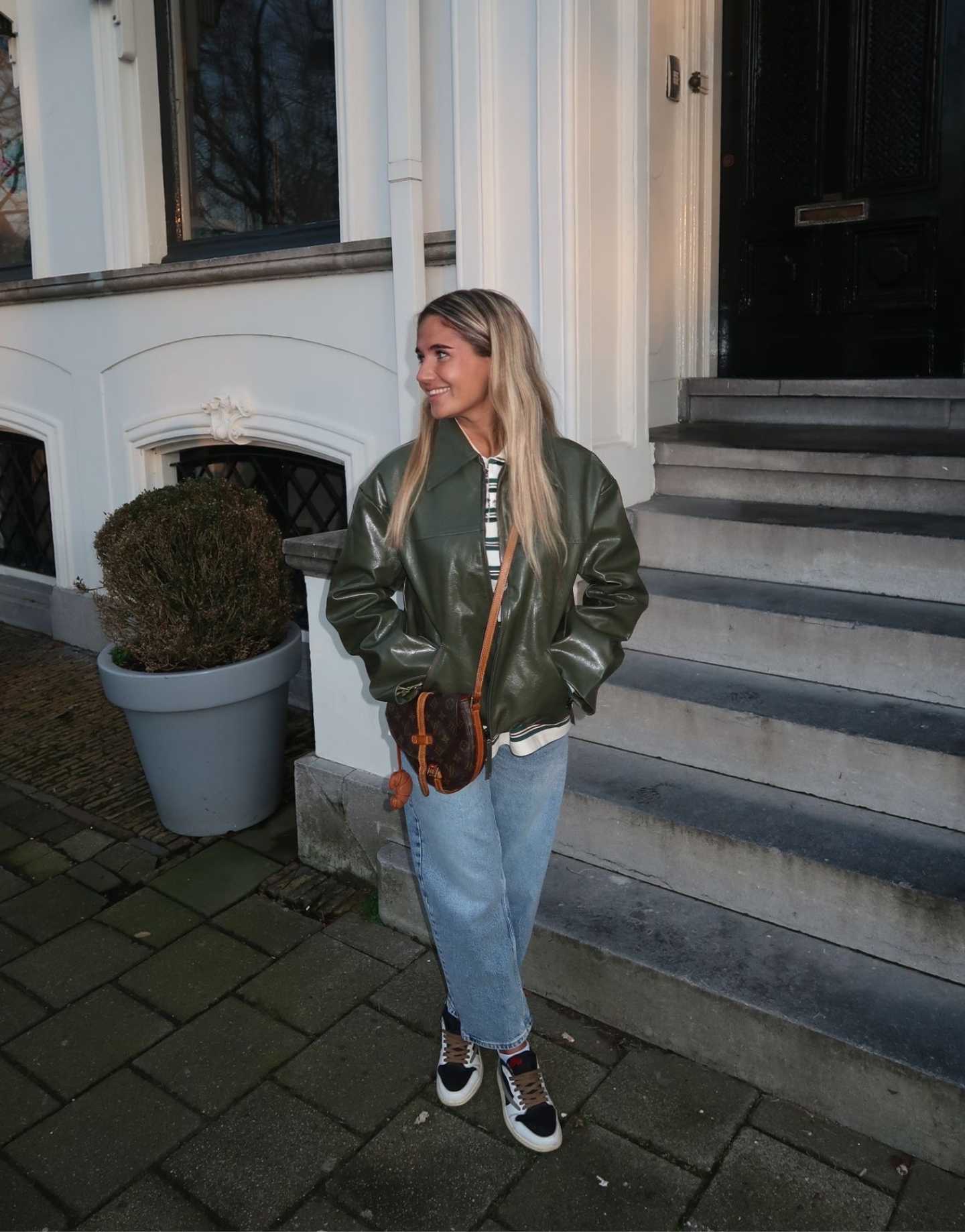 Art. Nr. :12914- Wasadvies: handwas- Droger: nee- Details: recht model / pu leer / rits sluiting / echte zakken / kraagje / detail bij de ritsen - Model lengte: 175 cm- Model draagt: maat S