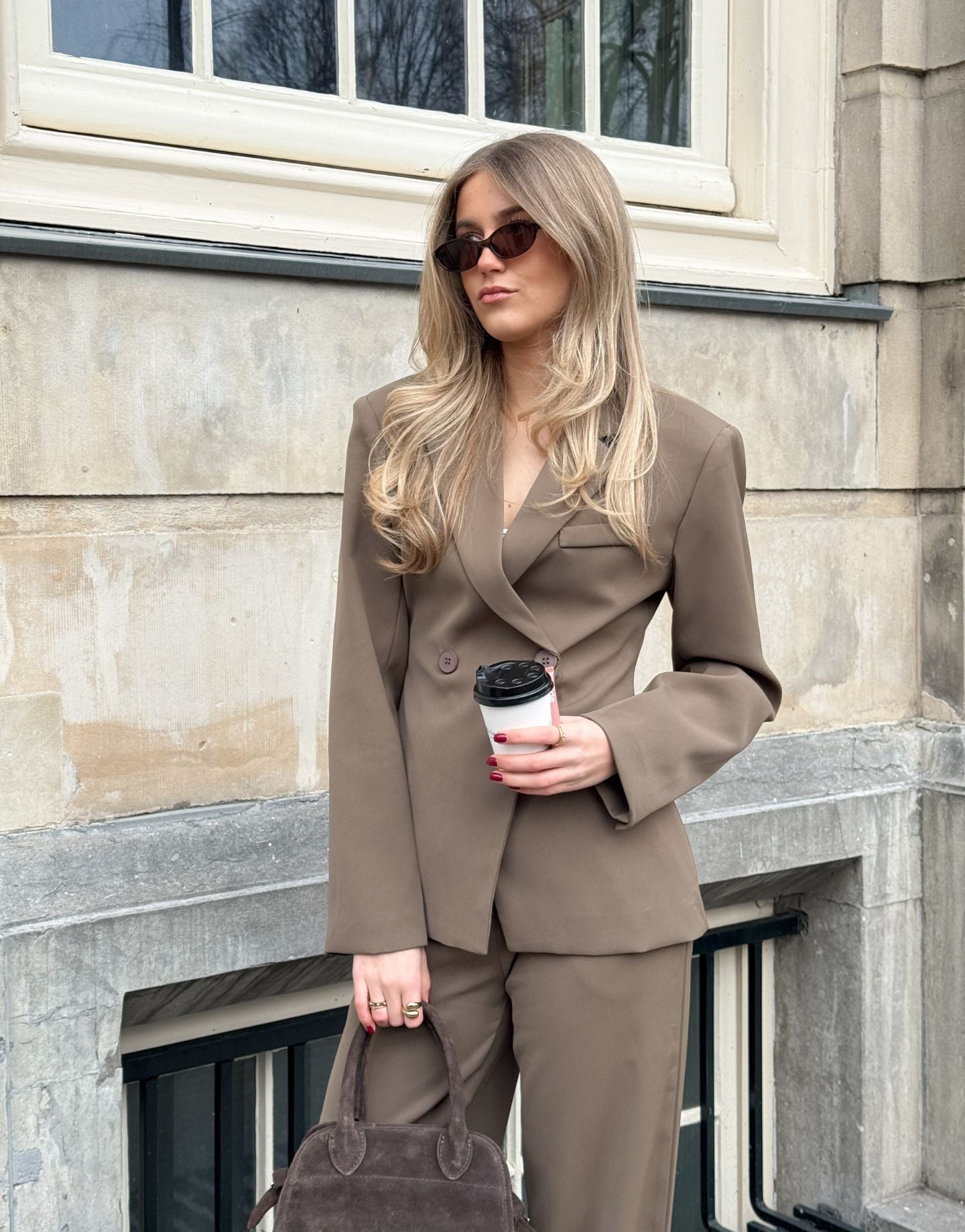 - Was advies: handwas - Droger: nee- Details: getailleerde pasvorm / twee knopen / V-hals / schouder pads / lange mouwen / nep zak op linkerborst - Model lengte: 173 cm- Model draagt: maat S