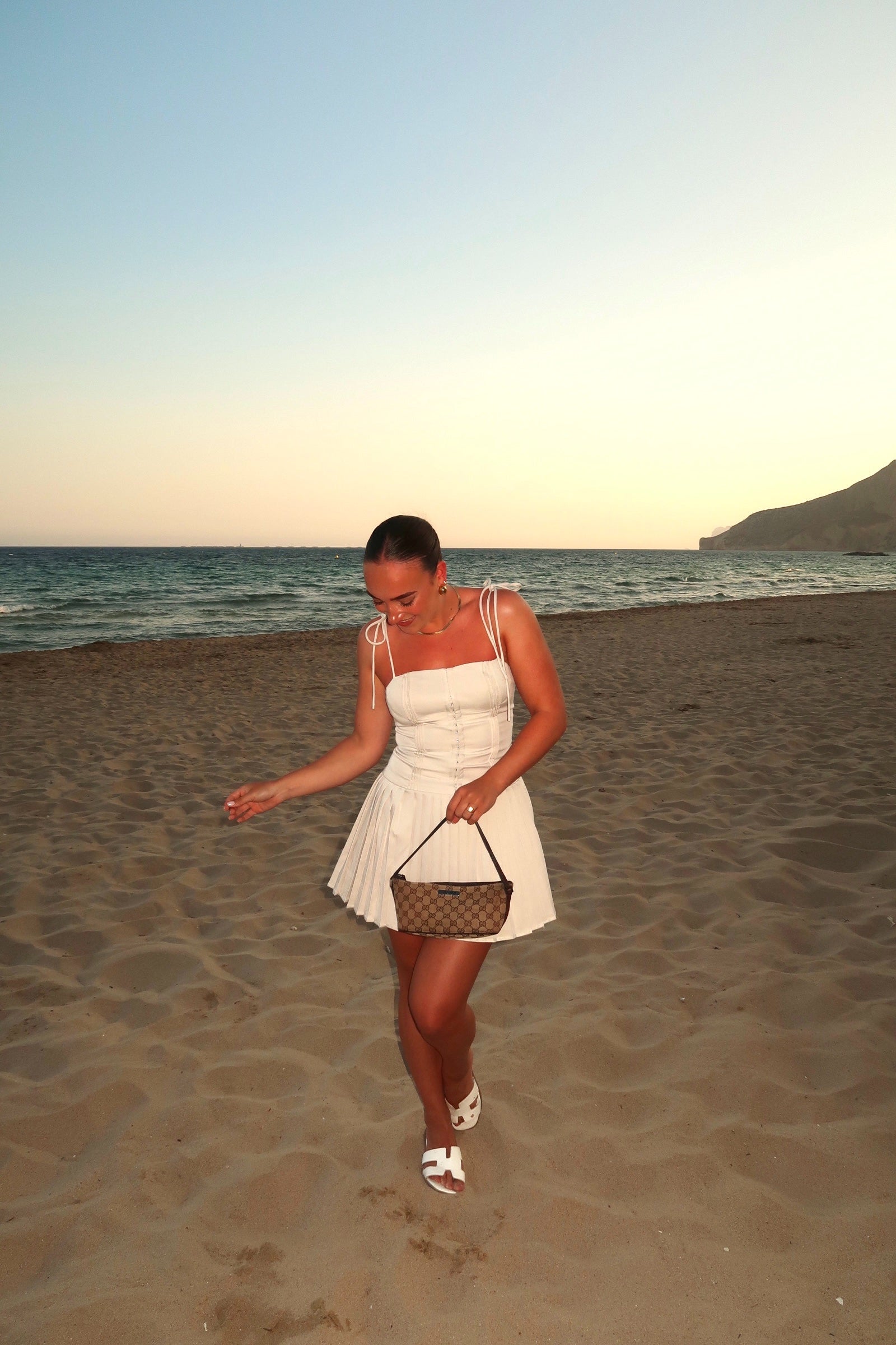 - Was advies: handwas - Droger: nee- Details: corset model jurk / mouwloos / strikjes bandjes / ristsluiting aan achterkant / geplooide rok / corset-bh haakjes aan de voorkant - Model 1 lengte: 176 cm- Model 1 draagt: maat S- Model 2 lengte: 173 cm- Model 2 draagt: maat S