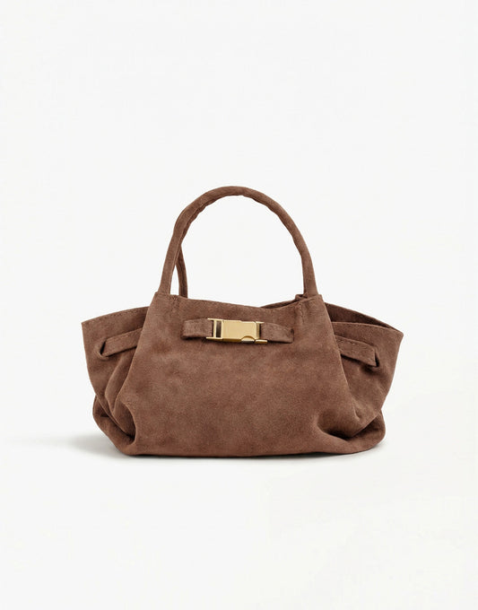 - Details: decoratieve gouden sluiting aan voorkant / ritssluiting / afneembaar en verstelbaar hengsel / één groot binnen vak / suede